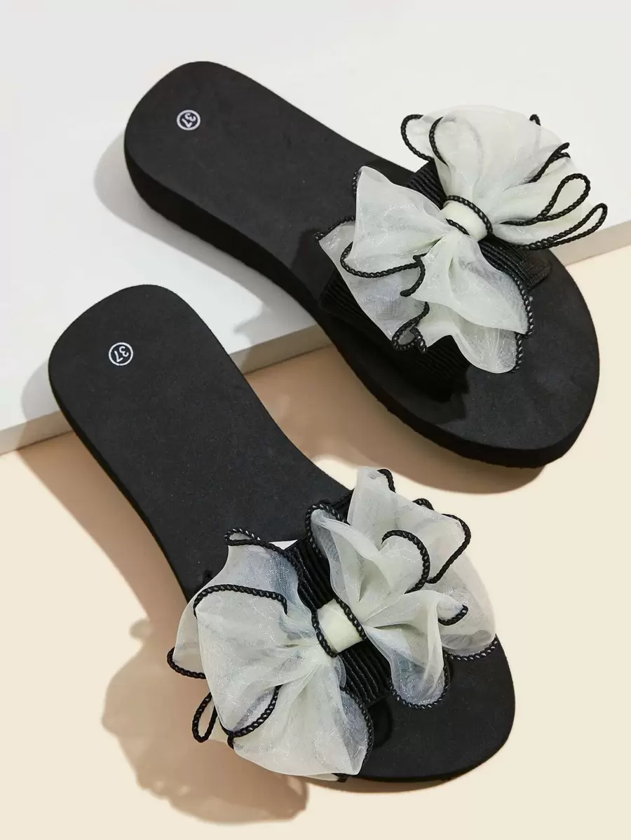 Bow Decor Slides,Beach Outfits,Slippers Women