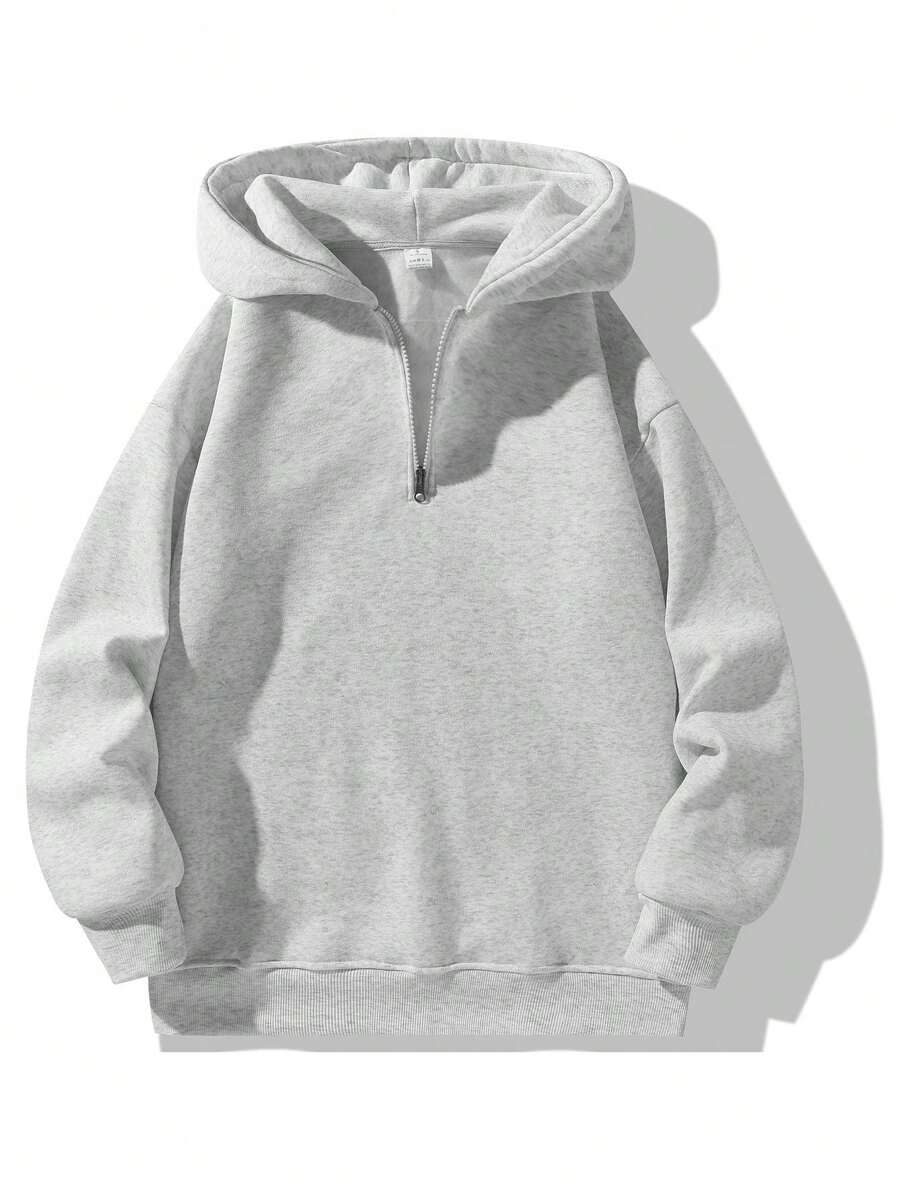 1pc Men's Solid Color Half-Zip Pullover Sweatshirt, Couple Thicken Fleece Hooded Sweatshirt