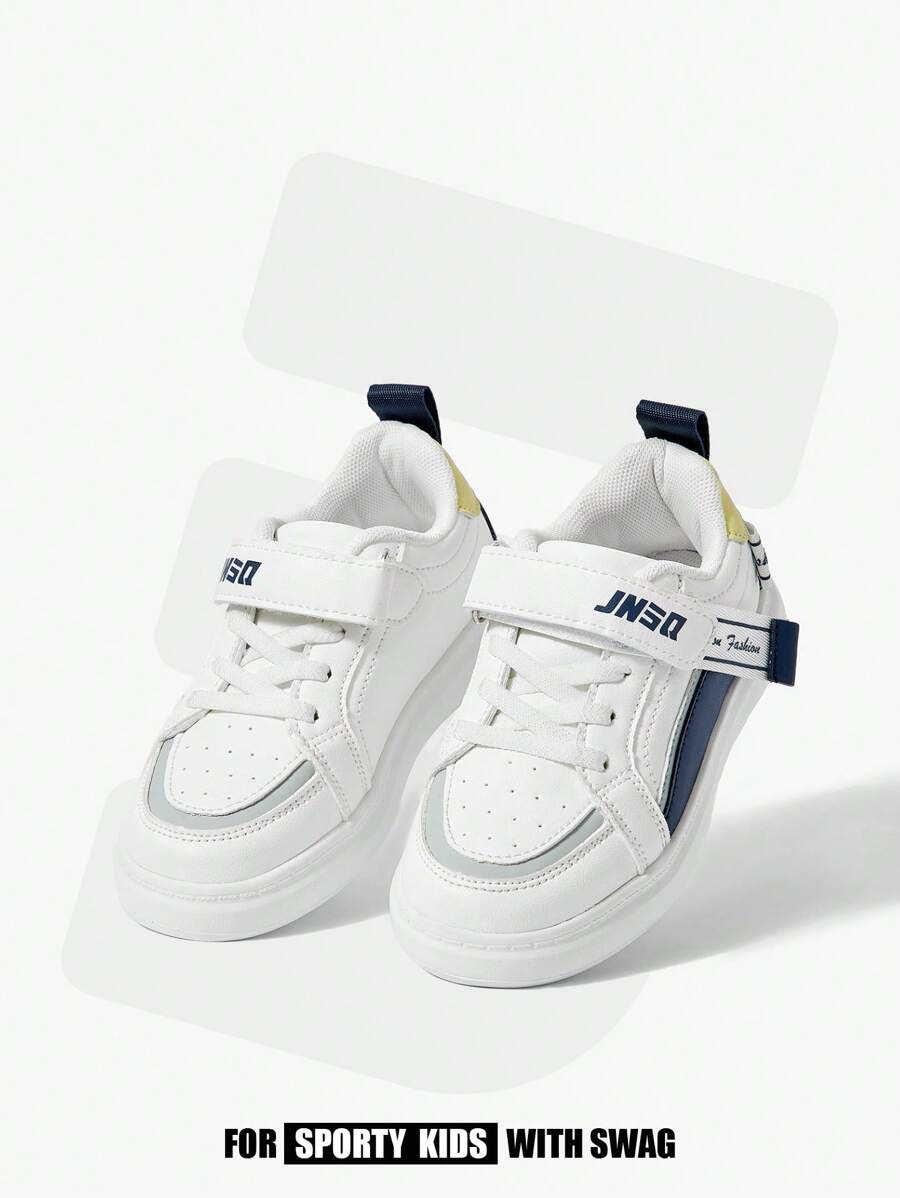 JNSQ Boys Letter Graphic Lace Up Front Hook-and-loop Fastener Skate Shoes For Outdoor
