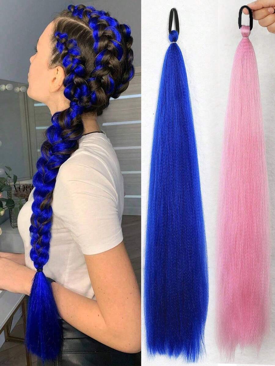 Braid Ponytail Extensions With Elastic Tie 26Inch Blue Synthetic Hair Extension For Braids Fashion Festival Rave Hair Accessories(Pack Of 1)