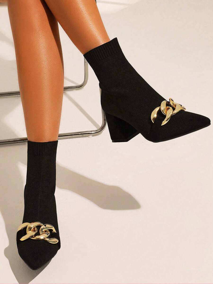 CUCCOO BASICS Women Shoes Valentine Days Day Versatile Fashion Elegant Chunky Heeled Black Sock Boots Vacation Shoes Summer For And Spring Shoes Spring Break Easter