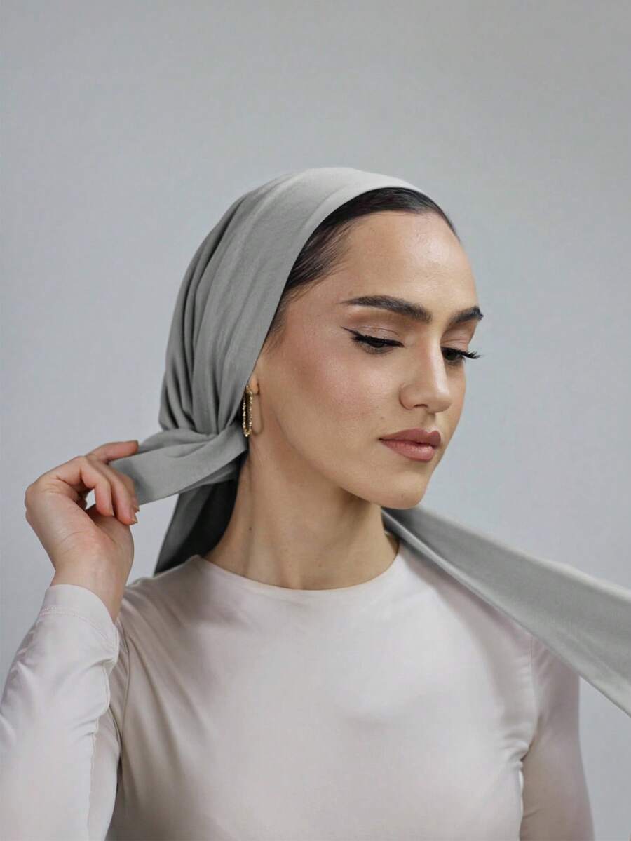 1pc Women's Solid Color Elastic Drawstring Headwrap, Turban Style Breathable Comfortable Stretchy Absorb Sweat Multipurpose Sports Headband Cap, Suitable For Daily, Sports, Yoga, Fitness And Fashion For Dress