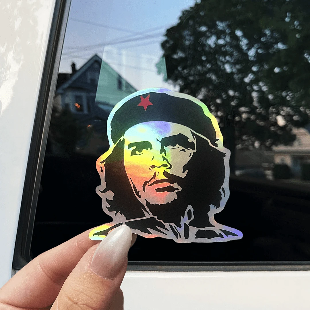 Che Guevara Revolution Man Vinyl Sticker - Cartoon Theme, Self-Adhesive, Single Use, Matte Finish, Asymmetrical Shape, Suitable For Plastic Surfaces, Left Side Car Bumper And Window Decals