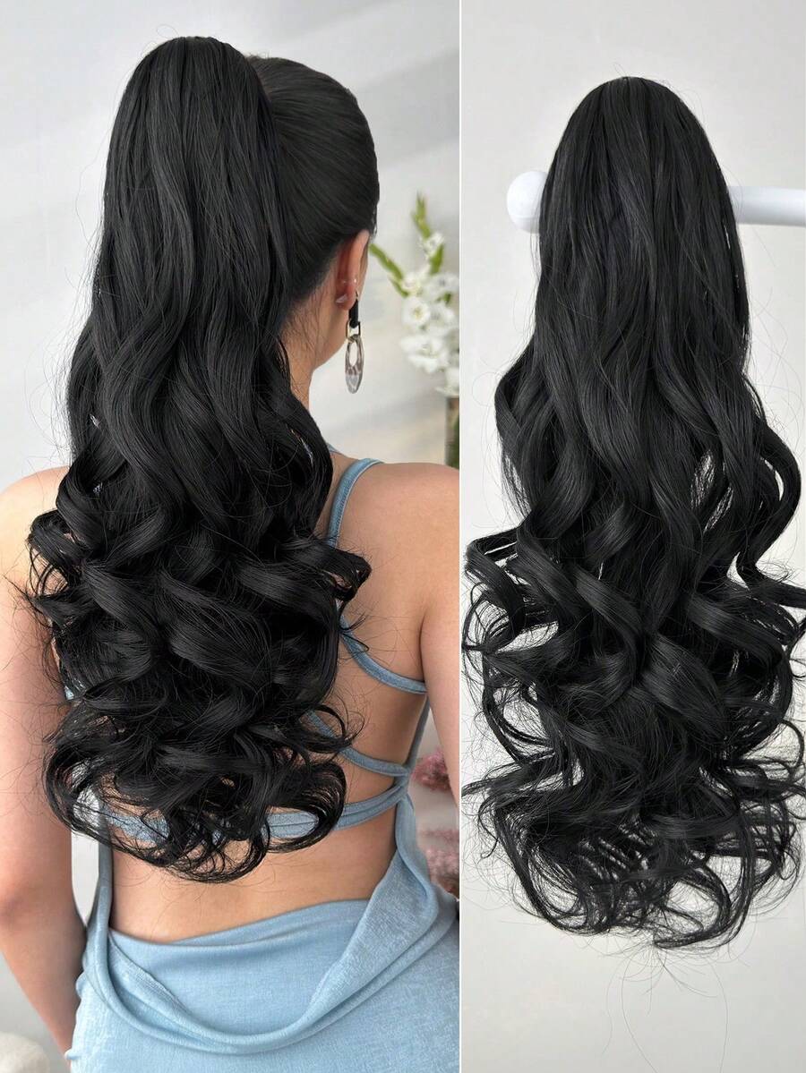 Claw Ponytail Extension 22 Inch Black Color Natural Wave Wavy Soft Natural Looking Heat Resistant Fiber Synthetic Hairpiece For Women Daily Use
