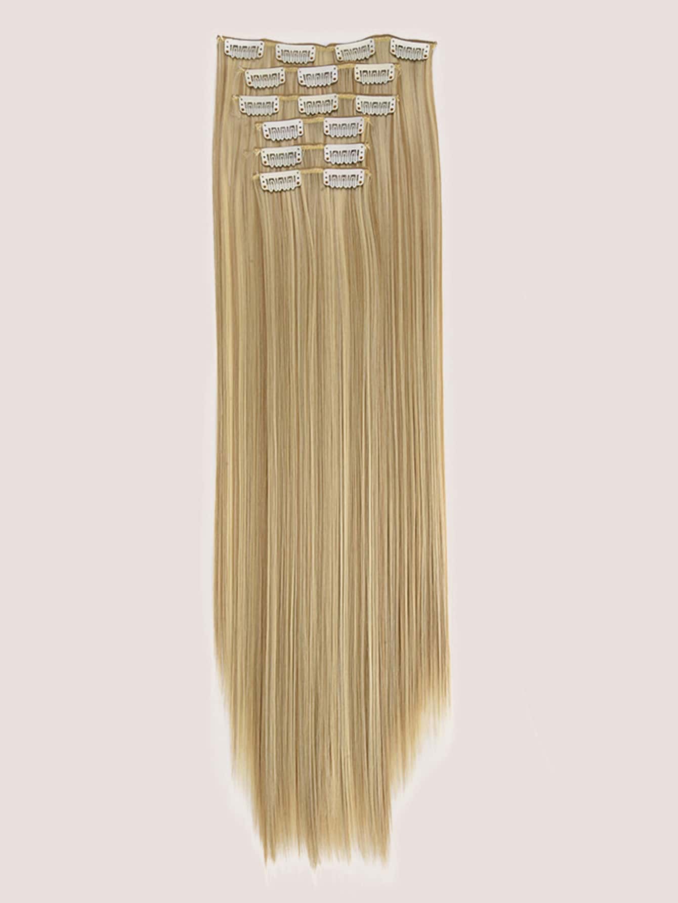 6 Pieces/Set 16 Clip Hair Extensions Black Long Straight Hair Natural Gradual Change Wig Heat Resistant Fiber Women's Hairstyle