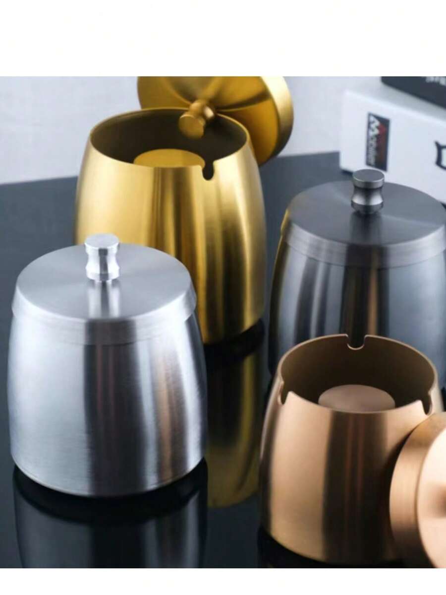 Covered Stainless Steel Ashtray, Creative Personalized Internet Celebrity Home Dining Room Bar Anti-Spill Anti-Drop Large Size Customized