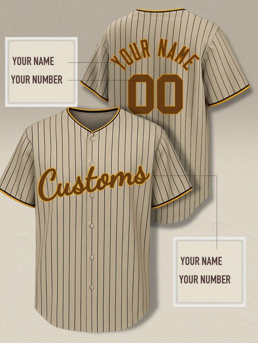 Custom Baseball Jersey For Men, Brown Polyester 100% Knit Fabric, Breathable & Fade Resistant, Regular Fit With Button Closure, All-Over Print, For Sports, Training, Casual Wear - Spring/Summer/Fall