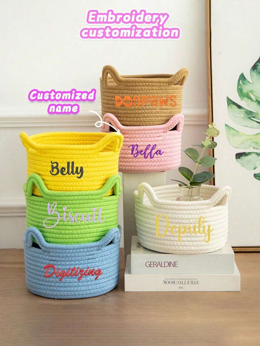 Customized Embroidered Rope Woven Storage Basket, Large Capacity Skin-Friendly Rope Basket For Baby Toy, Pet Supplies, Remote Control, Keys & Miscellaneous Storage, Suitable As Gift For Children, Family & Friends