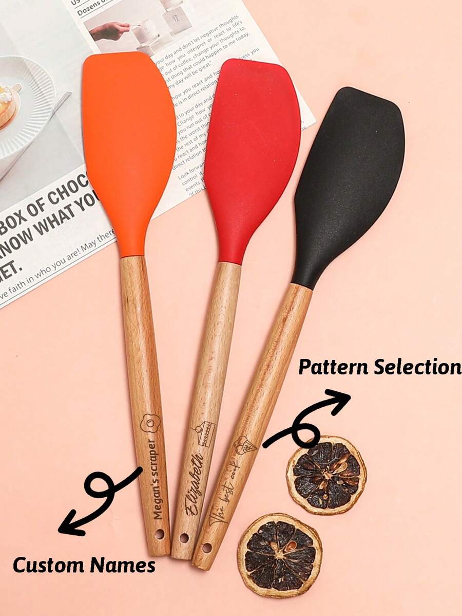 Customized Engraved Silicone Scraper, Personalized Kitchen Tool, Wooden Handle Design, Ideal Gift For Bakers, Chefs And Cooking Enthusiasts, Wooden And Silicone Scrapers, Customized Scraper Set, Engraved Baking Tools, Kitchen Cooking Set, Housewarming Gift, Wooden Handle Kitchenware