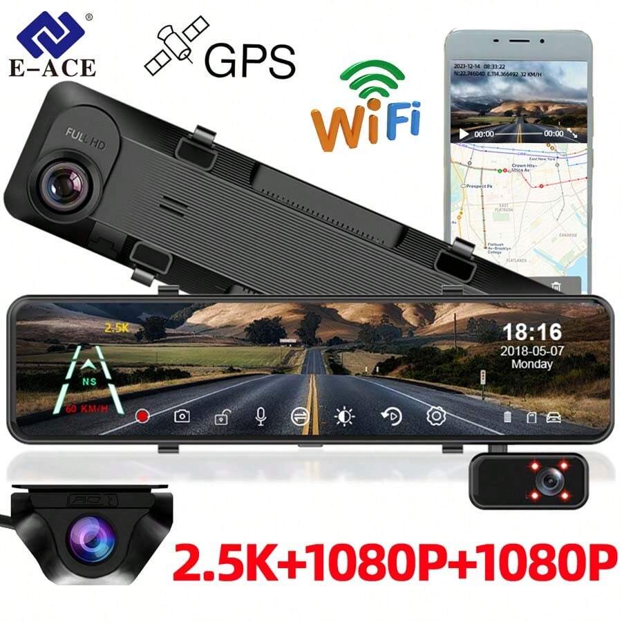 Dashcam 3 Lens GPS Night Vision 12 Inches 24h Rearview Mirror Video Recorder 1080P Rear Camera Black Box Car DVR 3 In 1 Cameras For Auto Dash Cam