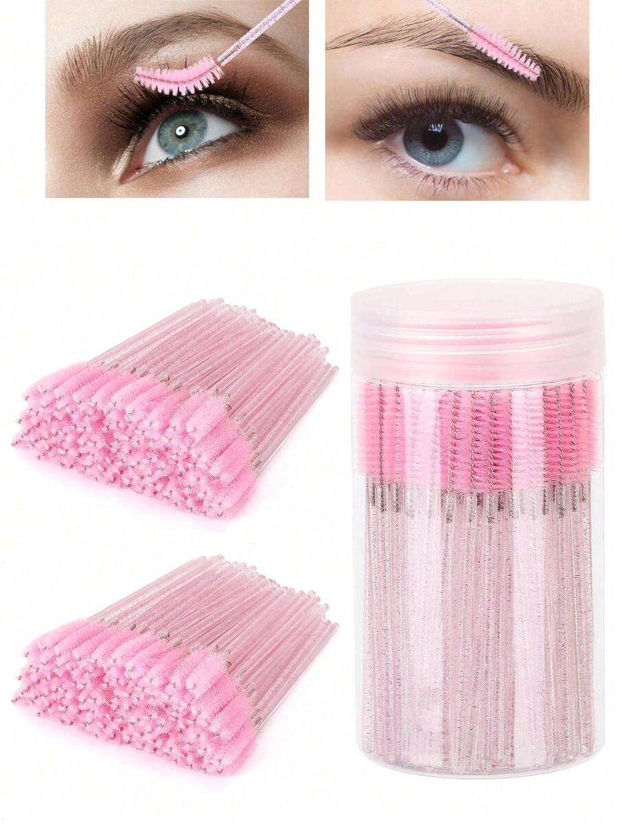 100pcs Disposable Mascara Wands, Crystal Eyebrow Brush (Suitable For Eyelash Extensions), Pink Eyelash Brush (With Storage Box), Eyebrow Brush, Eyeshadow Brush, Spiral Brush