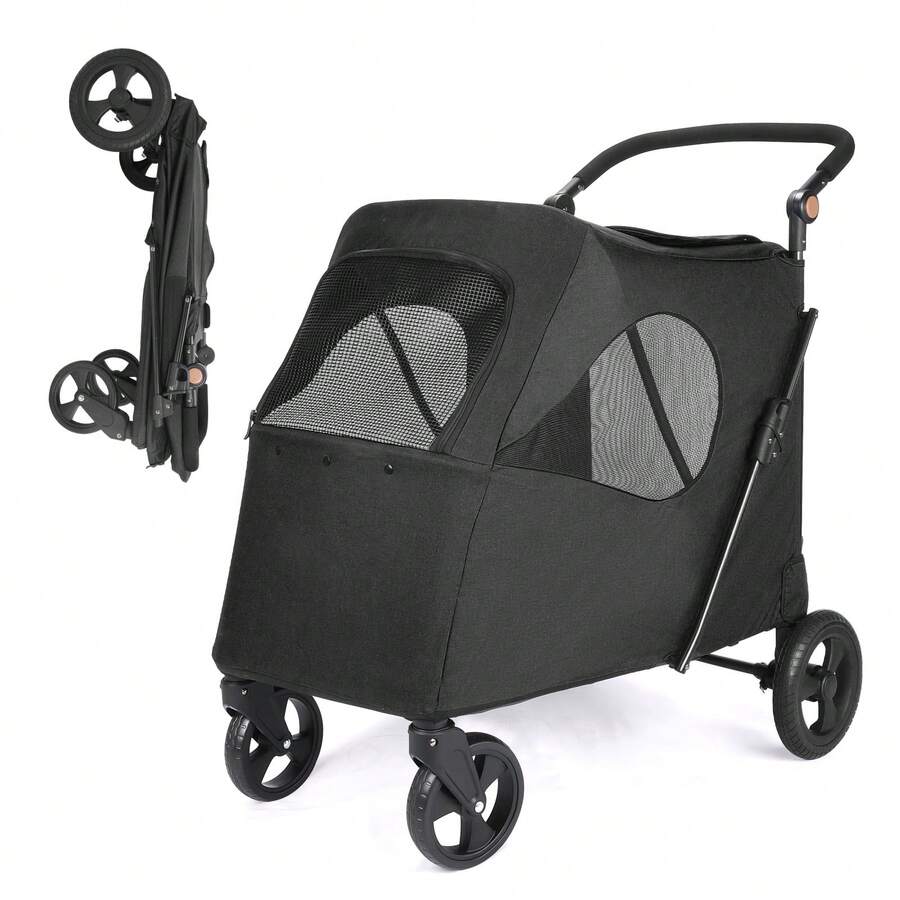Dog Stroller, Pet Stroller For Small Dogs Cats, Up To 33 LBS With Storage Basket & Cup Holder, Black