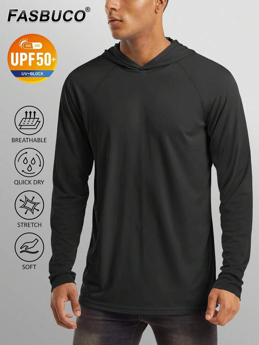 FASBUCO Men's Hooded UPF 50+ Sun Protection T Shirts Long Sleeve Athletic Fishing Shirts Rash Guards