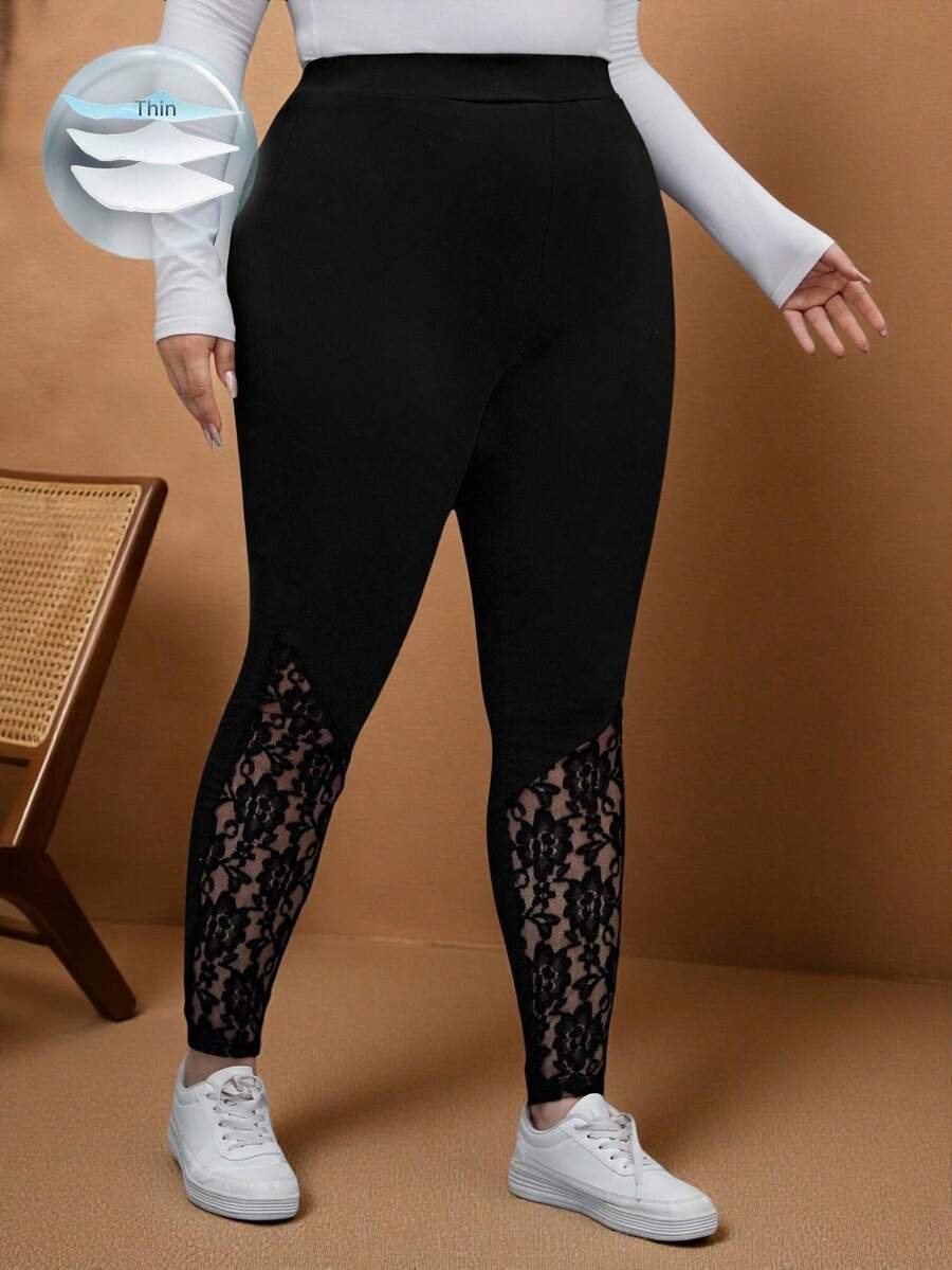 Rosumi Plus Size Women's Spring Contrast Black Lace Leggings,Summer