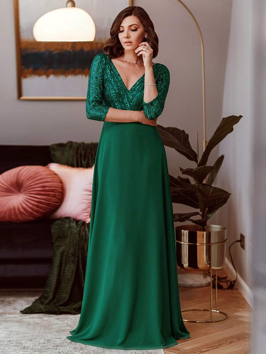 Fall Elegant Contrast Sequin Evening Formal Dress Semi Formal Dress For Party Dinner