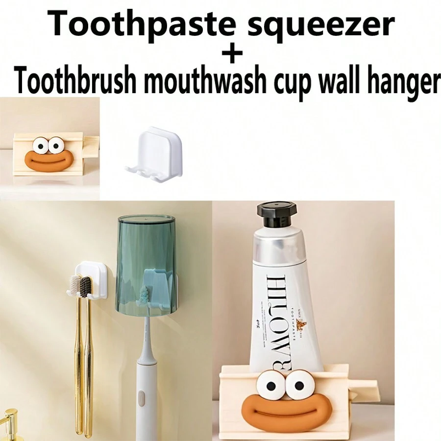 Easy-Squeeze Toothpaste Dispenser - Cute Wide Mouth Design, Manual Bathroom Accessory, Effortless Toothpaste Squeezing, Slouchy Toothpaste Squeezer, Elegant Toothpaste Squeezer, Bathroom Wash Lotion Sample Cup Roller Clip Toothbrush Cup Holder Wall Mount Rack No-Drill