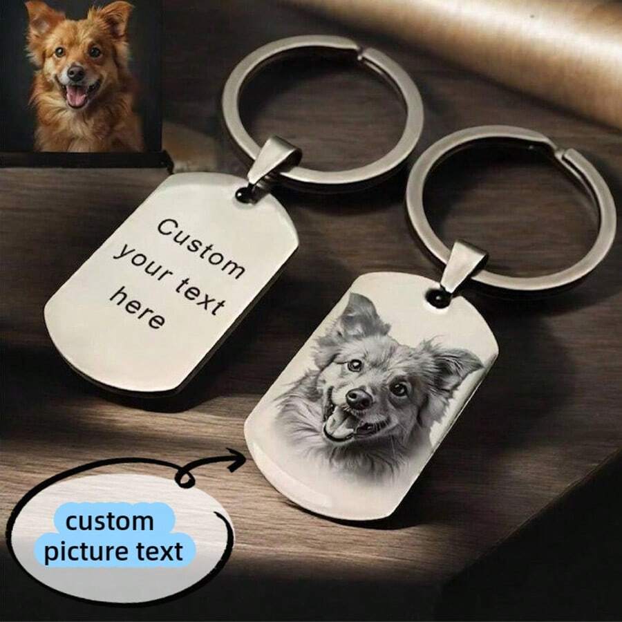 Customized Photo/Text Engraved Key Chain, Personalized Dog Tag Style Key Holder, Suitable For Men, Boyfriend, Father, Halloween, Christmas, Holiday Gifts, Pet Dog Accessory Key Chain