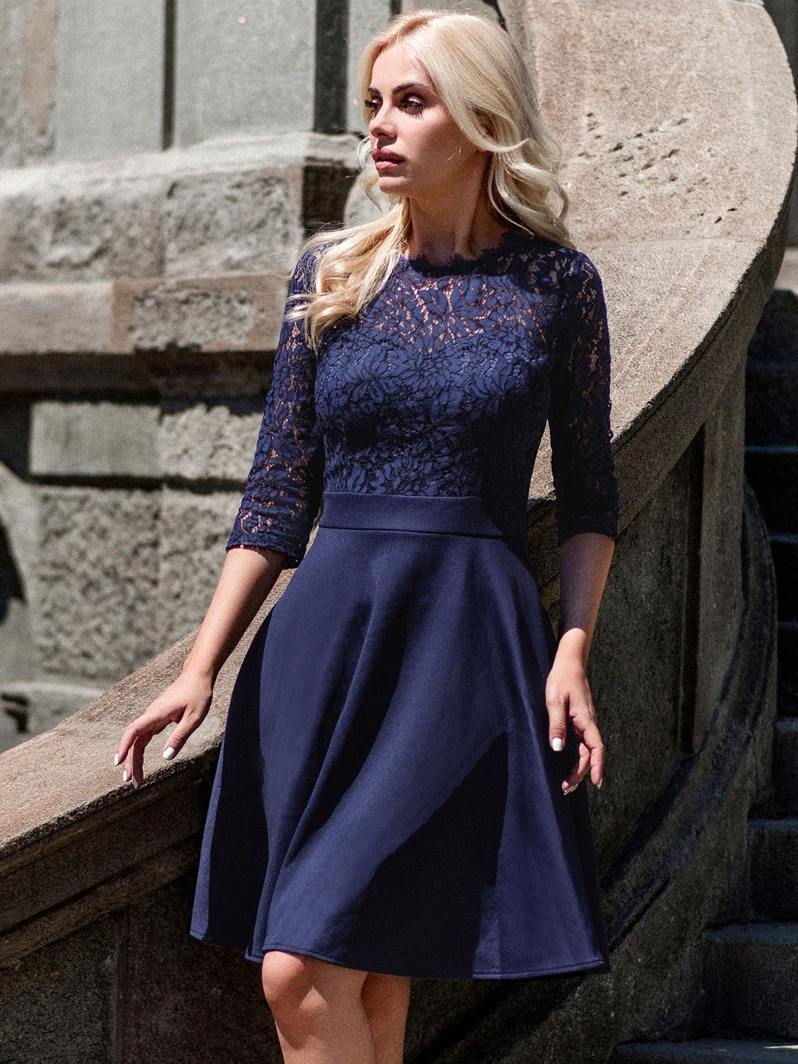 MIUSOL Elegant Solid Floral Lace Scallop Trim Prom Party Swing Dress
