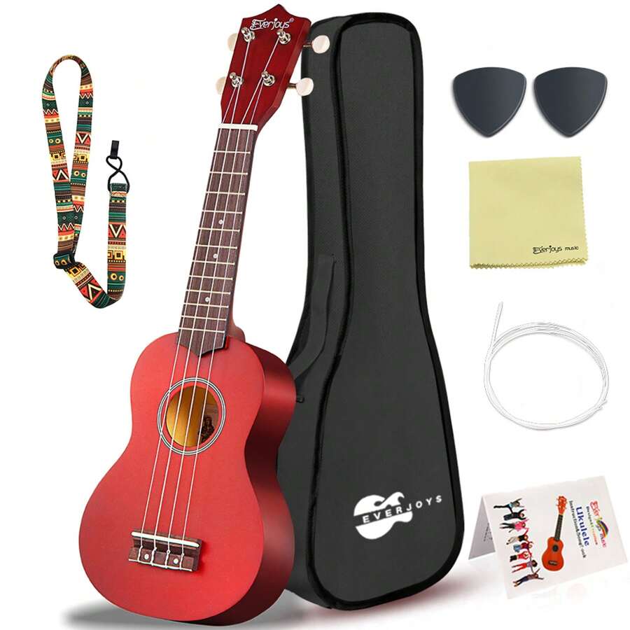 Everjoys Soprano Ukulele Beginner Pack-21 Inch Gig Bag Fast Learn Songbook Pick Strap Cloth All In One Kit