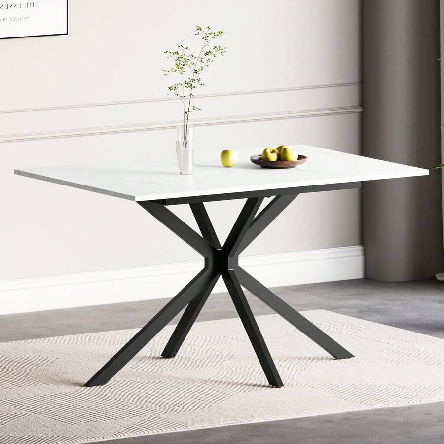 Extendable Dining Table,120-160 Cm Rectangular Marble Effect Kitchen Table For Dining Room, Kitchen,Restaurant