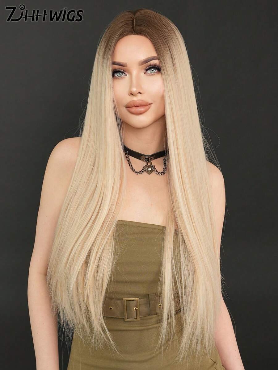7JHH WIGS 32 Inch Linen Blonde Wigs For Women Mix White Highlight, Super Long Straight Wigs, Elegant Fluffy Without Bangs Middle Part Wig,Very Soft Synthetic Heat Resistant Fiber Hair, Beautiful Full Machine Hair Wig Suitable For Fashion Girls Daily,Anime Or Costume Cosplay Decoration,Music Festival Dance Party Street Wear Use, Mother's Day Gifts