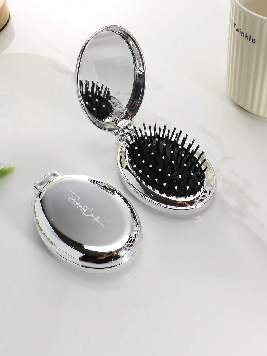 1pc Shiny Electroplated Silver Oval Folding Comb With Compact Mirror, Pocket-Sized, Portable Design For Unisex, Back To School, Travel Holiday Essentials, Hair Accessories For Women, Hair Brush, Detangling Brush, Ball Brush, Mini Hair Brush Set, Wooden Comb, Hair Brush, Mini Hair Brush, Detangling Brushes, Hair Products, Hair Tools, Hair Stuff, Hair Care, Curly Hair Brush, Hairdressing Equipment, Small Comb, Mini Hairbrush, Travel Essentials, Hairstyle, Hairdressing,Hair Brush,Slick Back Brush,Styling Brush,Curly Hair Brush,Edge Brush,Hair Comb,Brush Hair,Hair Brush Set,Comb Hair,Comb For Curls,Detangling Brush,Hair Brush For Women,Hair,Travel,Hair Products,Hair Tools,Hair Stuff,Barber,Barber Accessories,Barbershop,Hairdressing Equipment