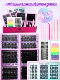640pcs Eyelash Extension Kit, DIY Eyelash Extension Set (8-16mm), Individual Eyelash Cluster Kit, D-Curl Eyelash Extension Set, Includes Glue, Sealing Tape And Eyelash Extension Tools, Eyelash Kit, Eyelash Cluster, Eyelash Mascara, Artificial Eyeliner (10D+20D+30D+40D+50D+60D+80D), Suitable For Daily Use, Parties, Travel Or As Gifts For Family And Friends 648/666/720pcs D-Curl Fluffy False Eyelashes Set, Includes Beginner-Friendly Eyelash Tutorial, Thick & Voluminous DIY Segmented False Lashes, With Glue, Sealant, Tweezers, Lash Brush, Magnifies Eyes, Lightweight & Reusable, Large Capacity Individual Lashes Set, Soft & Natural Mixed Lashes, Create 3D Dimensional Eye Makeup, For Home DIY, Travel, Daily Commute, Evening Party, Wedding Bride Makeup, Etc. #1 Bestseller