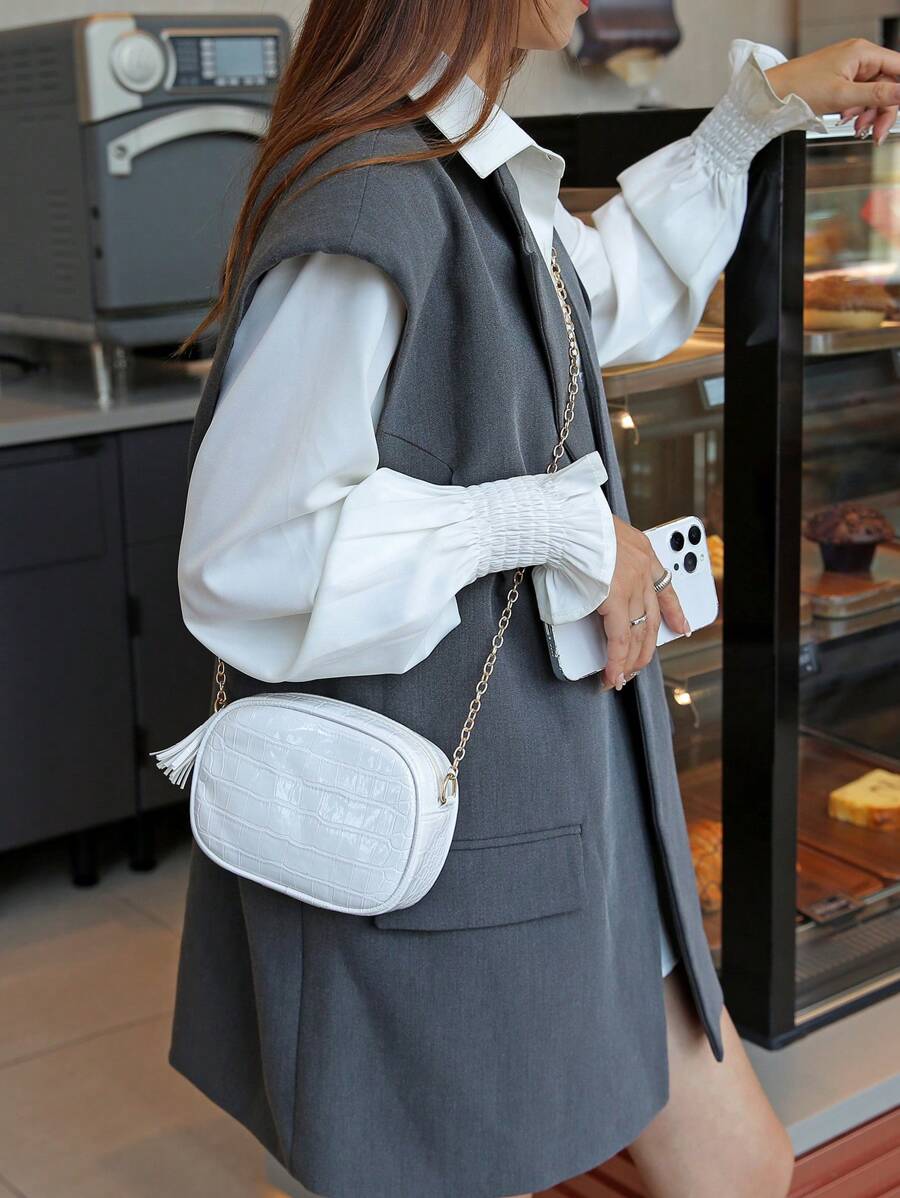 1pc Fashionable Alligator Print Small Square Crossbody Bag, Simple And Versatile, Summer New Bag For Women With Texture, High-End Feeling Shoulder Crossbody Bag With Chain, High-End Alligator Print Small Round Bag For Women, Summer New Mini Versatile Shoulder Crossbody Bag With Chain