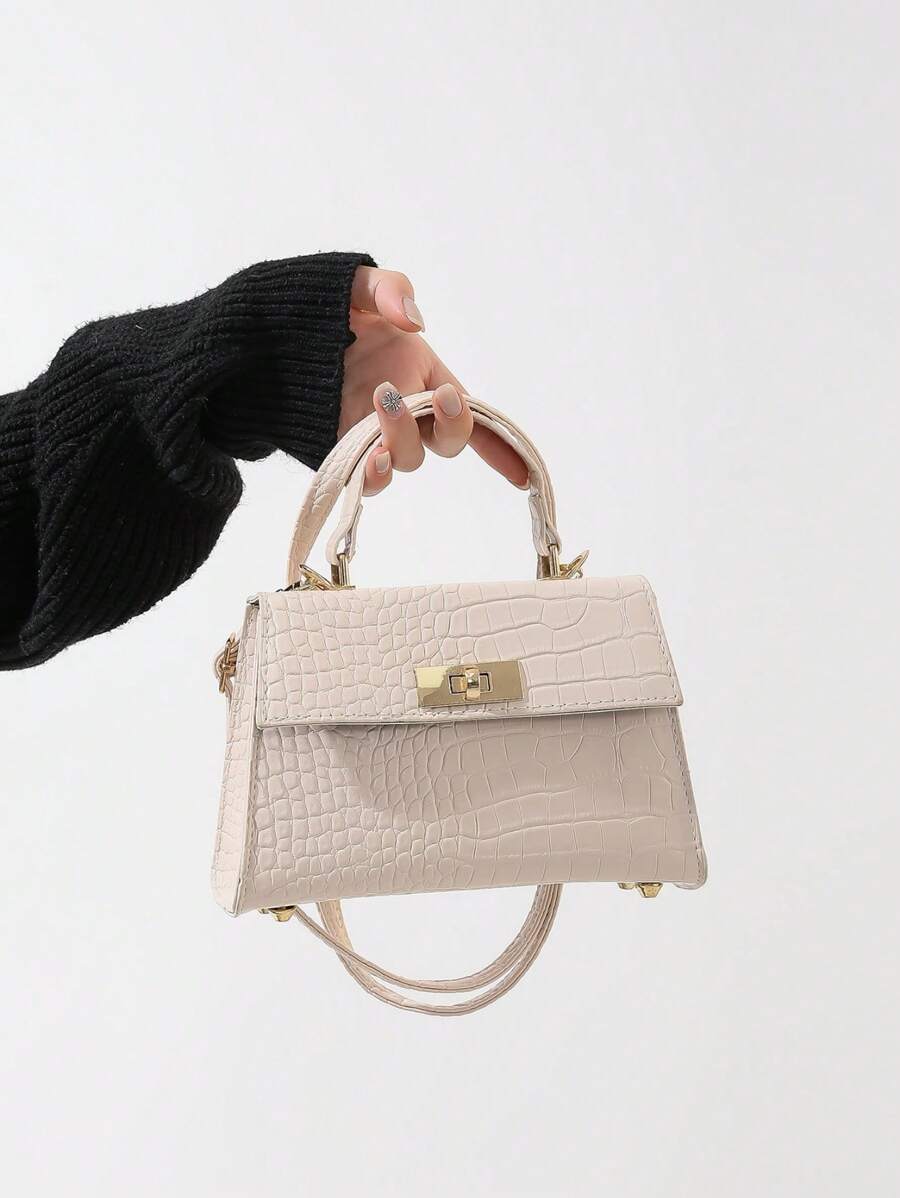 Fashionable Mini Metallic Alligator Pattern Crossbody & Handbag With Flip Lock Twist Closure