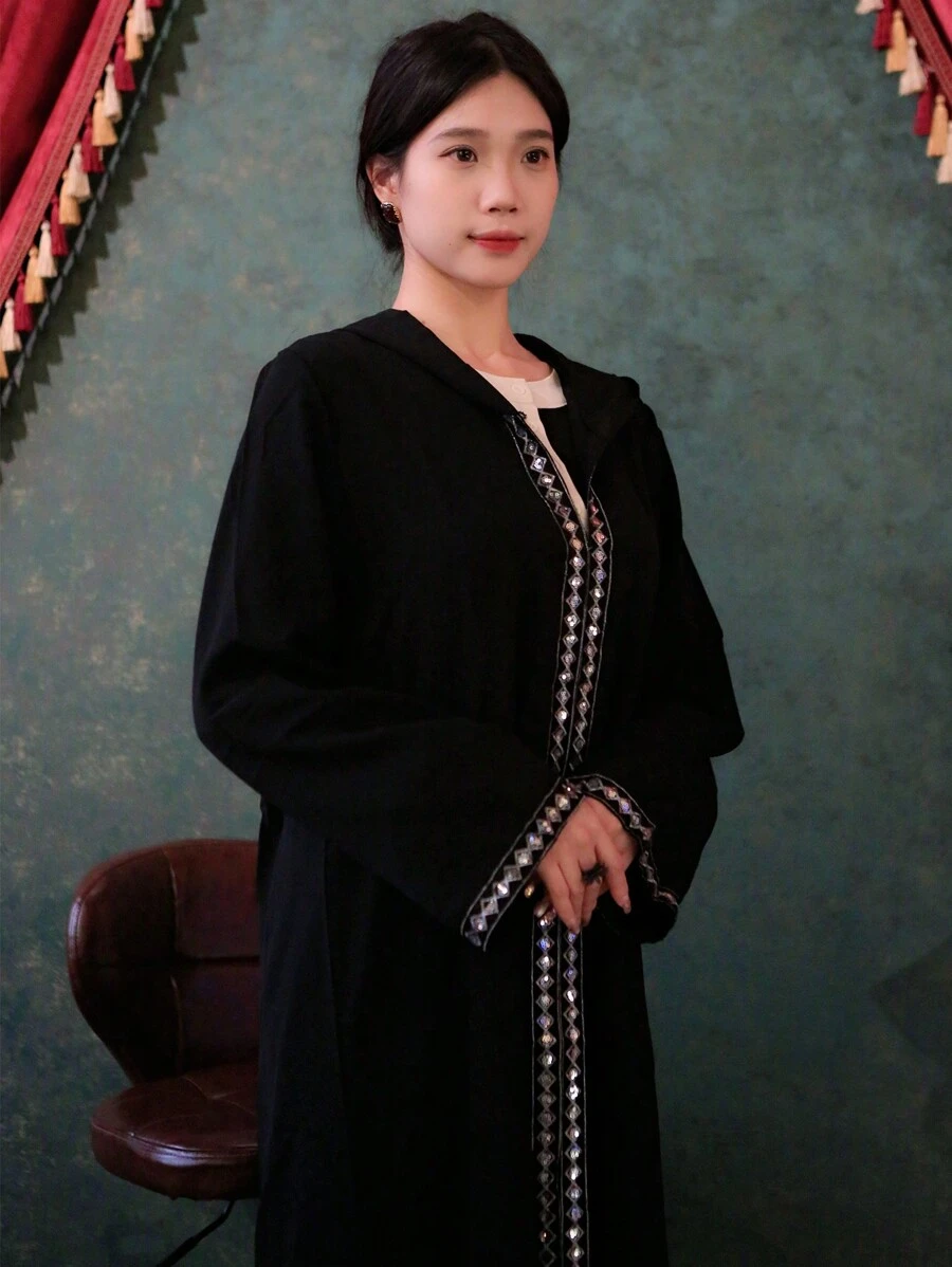 Fashionable Muslim Islamic Long Sleeve Hooded Dress With Sparkling Design
