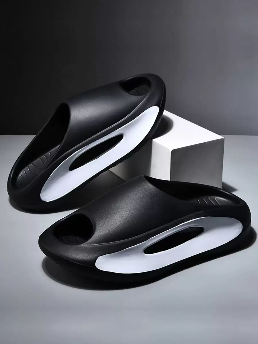 Fashionable Slides For Men, Two Tone Cut Out Design Single Band EVA Slippers