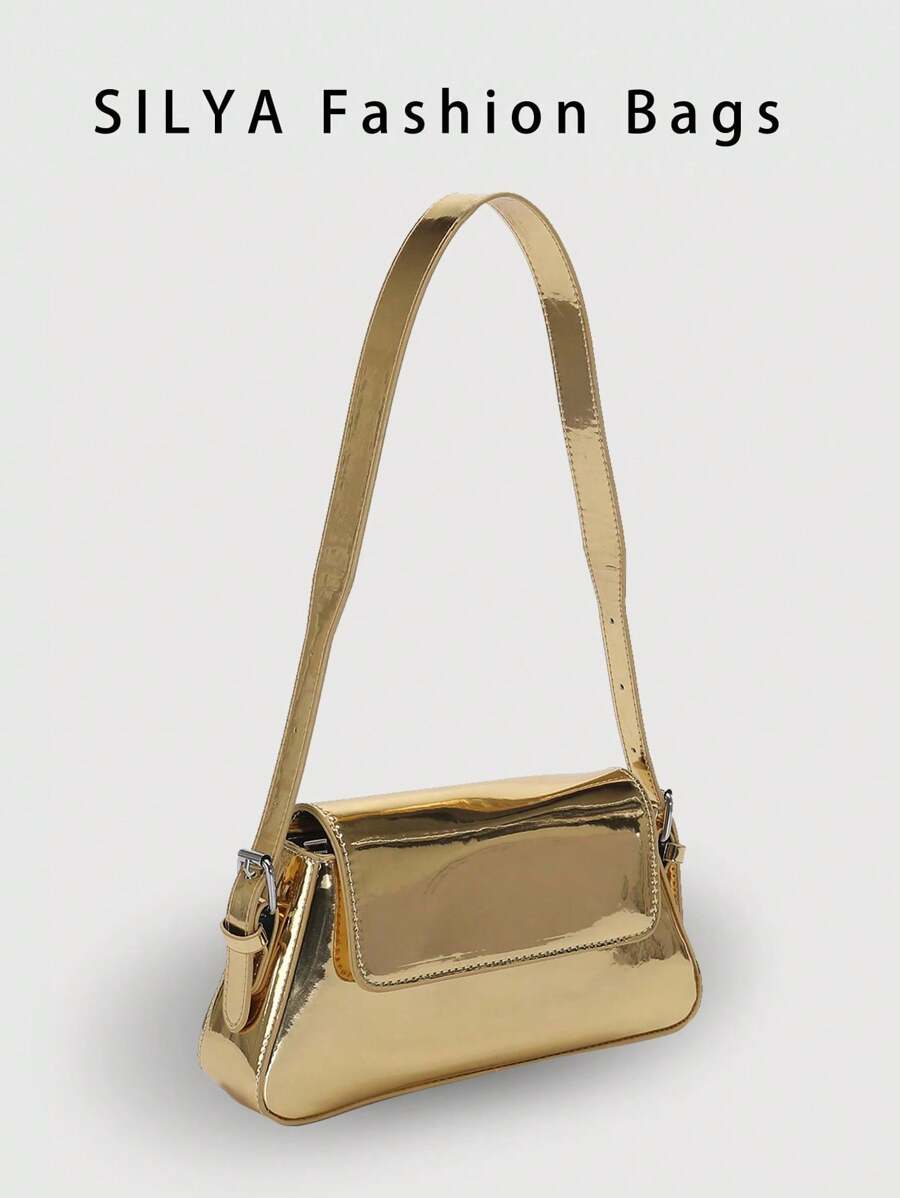 Fashionable Solid Color Glossy Crossbody Shoulder Bag For Women