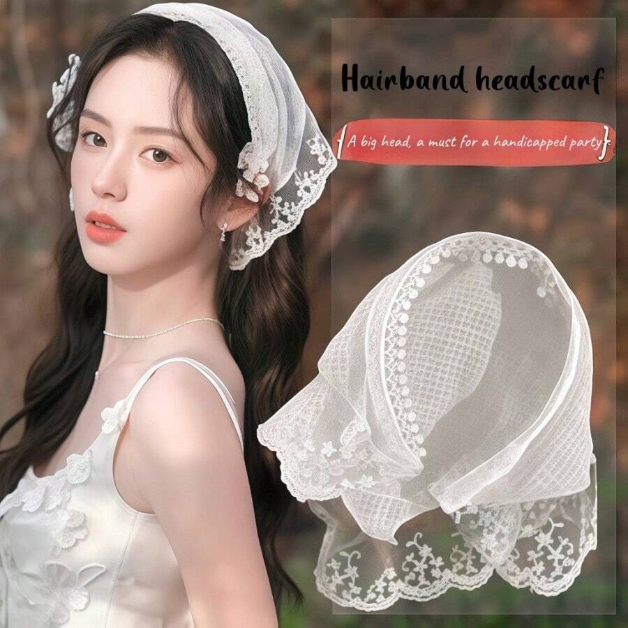 French Floral Lace Triangular Headscarf For Spring And Summer, With A Rustic Style, Oil Painting Floral Style, And A Highly Attractive Atmosphere Silk Scarf Hair Accessory.