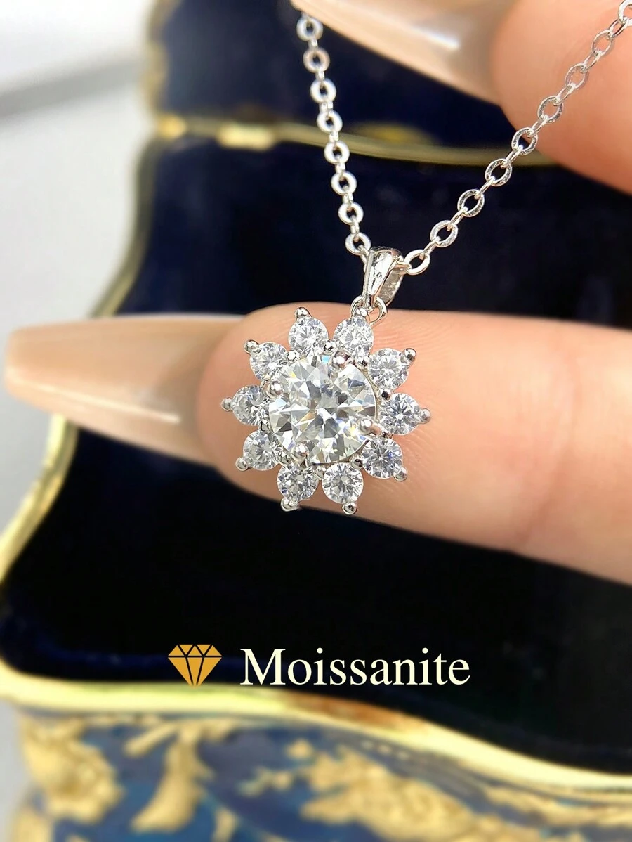 1Pc 1ct Moissanite Diamond Round Snowflakes Pendants Necklace S925 Sterling Silver Wedding Necklace Engagement Necklace Luxury Jewelry For Gifts Girls Women Anniversary