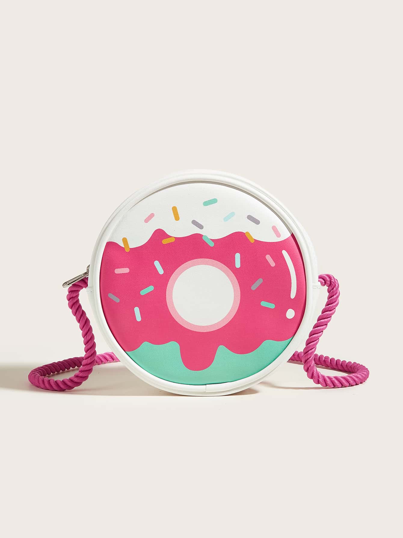 1pc Girls' Pink Pu Donut Shaped Crossbody Bag With Cute And Fun Design