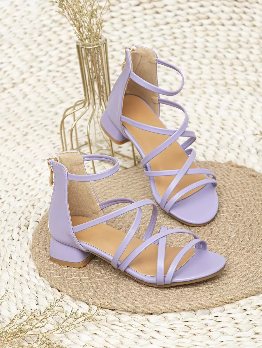 Girls Zip Back Strap Sandals, Chunky Heeled Ankle Strap Open Toe Sandals