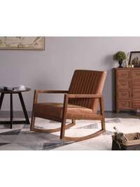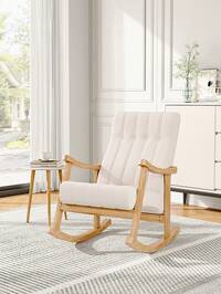 Furchen Rocking Chair, Rocking Chairs For Adults, Lounge Chair, Chairs For LivingRoom, Nursery Chair, Wooden, With Adjustable And Folding Footstool, Suitable For Living Room, Balcony, Garden, Load Capacity 150 Kg, 86x65x100 Cm