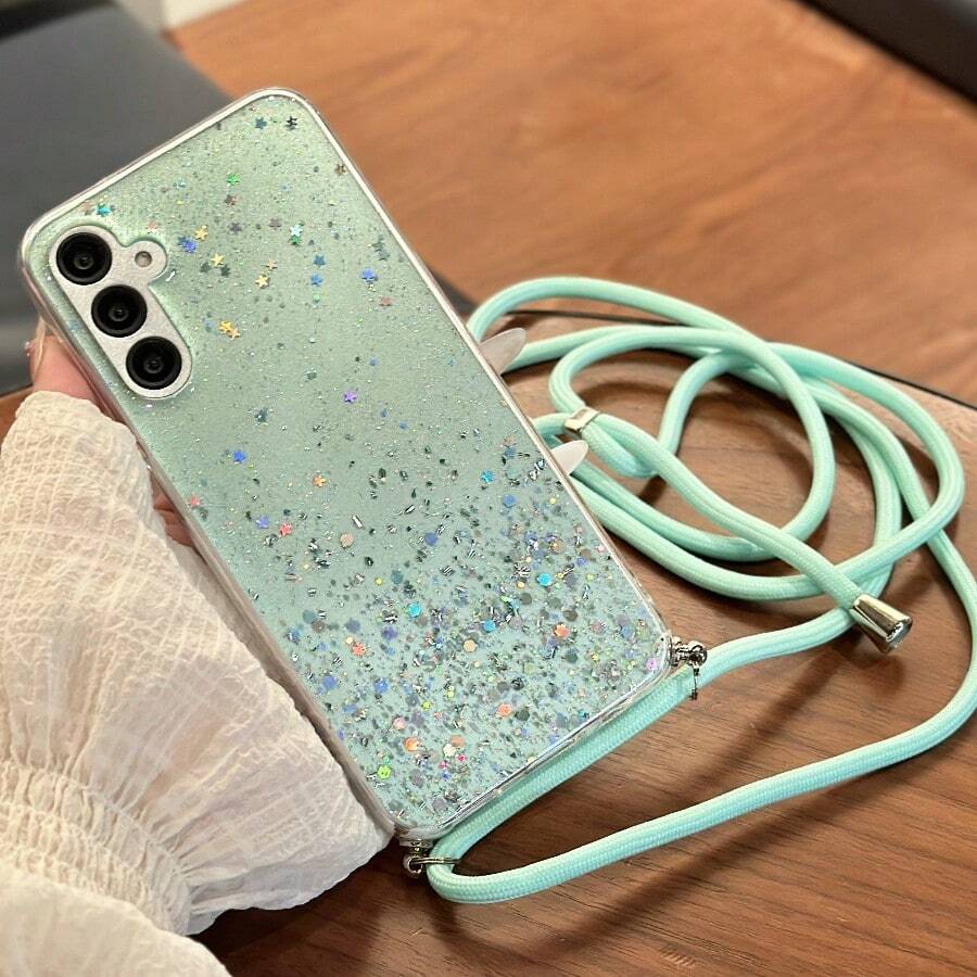 1pc Starry Sky Glitter Epoxy DIY Lanyard Necklace Strap, Suitable For IPhone & Android Phone Cases, Drill & Screw Nylon Rope, Lightweight & Portable