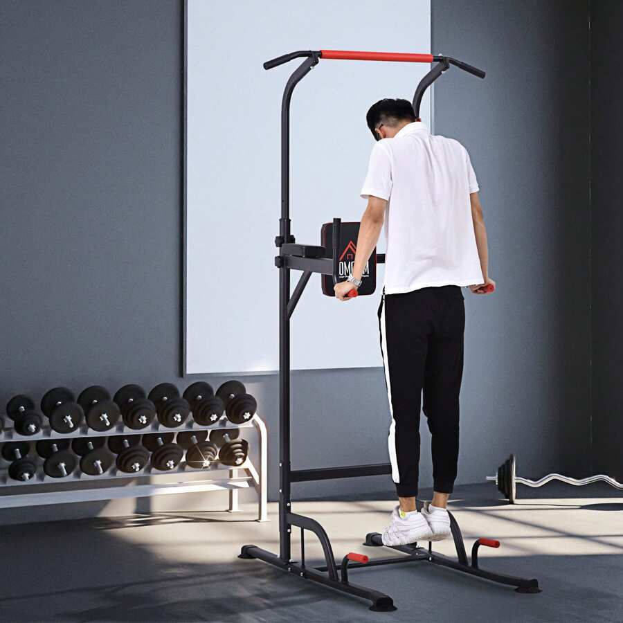 HOMCOM Power Tower Station With Dip Stand, Pull Up Bar Home Office Gym Training Workout Equipment