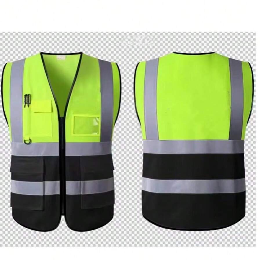 High Visibility Reflective Vest With Pockets And Zipper Front, Neon Yellow, Meets ANSI/ISEA Standards