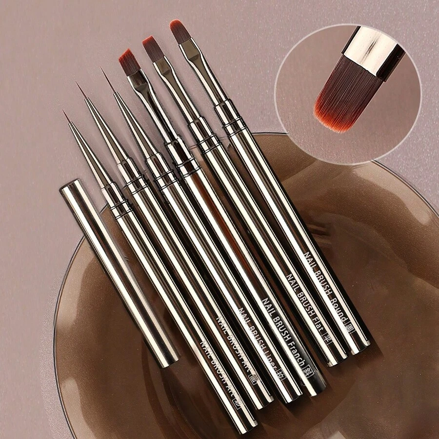 Hot 6PCS Metal Rod Nail Art Brush Set Wholesale Colouring Pen Large Square Round Light Therapy Pen Halo Pen