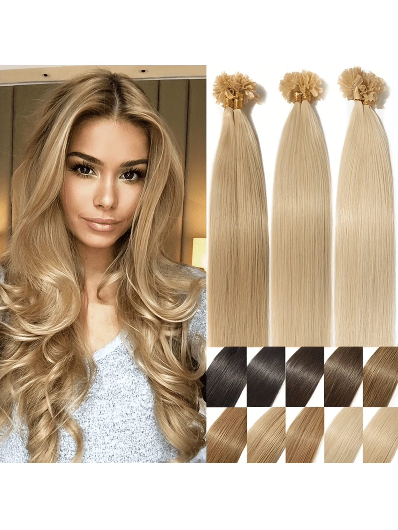 Human Hair Extensions U Tip Hair Extensions Nature Color Straight Human Hair Keratin Extensions Invisible 50 Pcs U Tip Human Hair Extensions