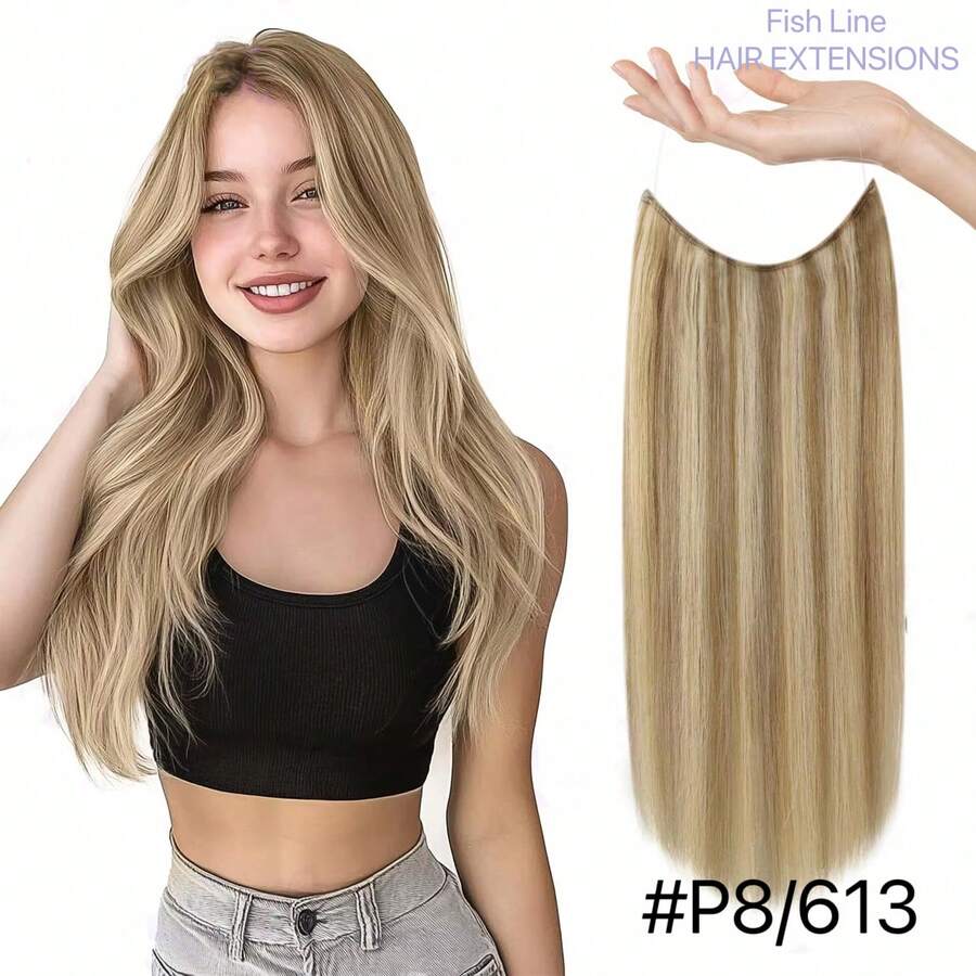 Invisible Wire Hair Extensions P8/613 Highlight Blonde Human Hair Fish Line One-Piece Clip Ins Haie Extensions Transparent Line
