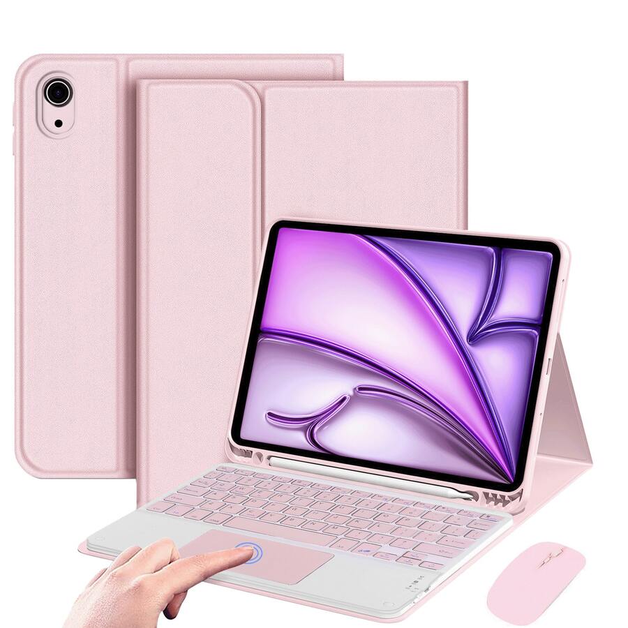 Keyboard Case With Detachable Rechargeable Bluetooth Keyboard (280mAh) And Touchpad For Samsung Galaxy Tab / IPad / Redmi IPad SE, With Pen Slot (Pink)