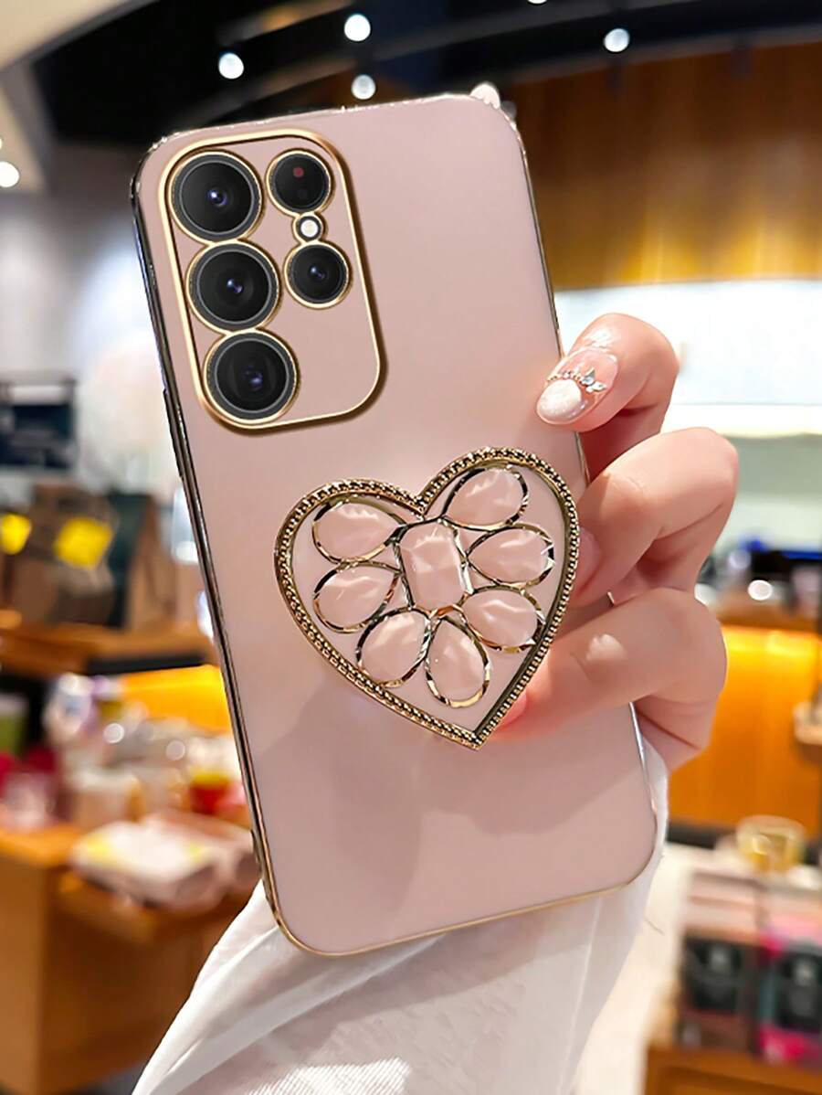 Plated Heart Stand & Plated Phone Case, Compatible With IPhone 17 16e 15 14 13 12 11 XS XR X 7 8 Plus Pro Max Galaxy S25 S24U S23 A55 A54 A35 A25 A17 A07 A16 A06, Electroplated Protective Cover