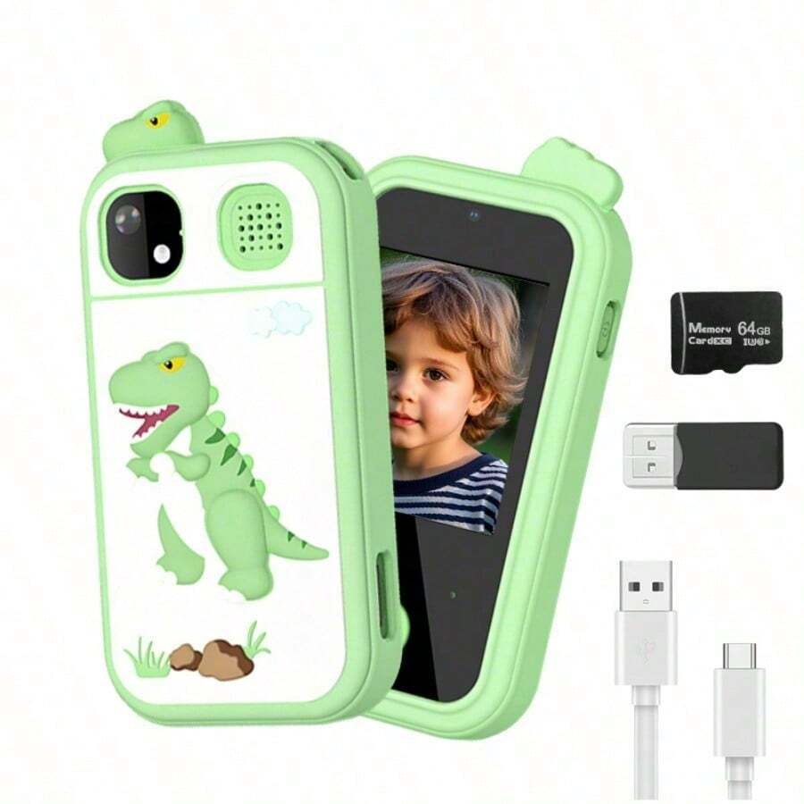 Kids Phone, With 64GB Memory Card, Dual Cameras, Fun Stickers, 1080P High-Definition Video Function, Five Puzzle Games, Multiple Filters To Choose From, Kids Holiday Birthday Gift