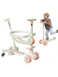 Multifunctional 3 Wheels Scooter, Toddler Scooter With Light Up Wheels, Kids Scooter With Adjustable Handbar, Foldable Kick Toddler Scooter With Push Handle For Boys Girls