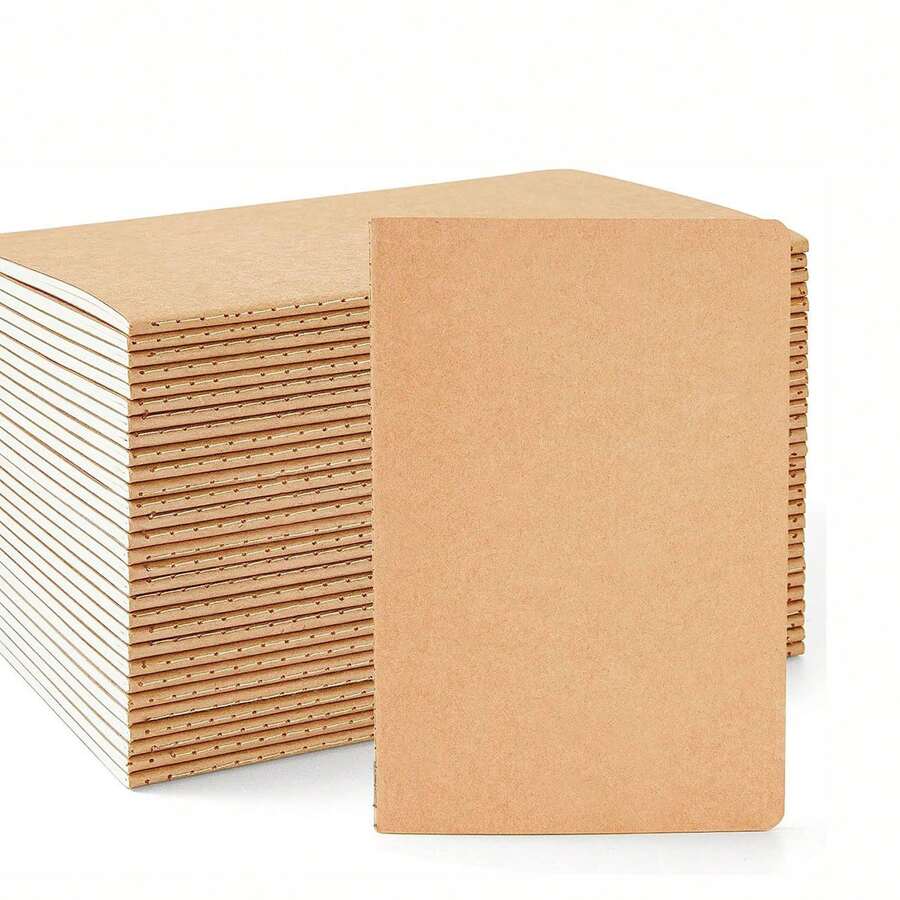 Kraft Paper Mini Notebook, Travel Diary, School Office Homework Diary, Scratch Pad, Portable Notepad, Brown Cover, Horizontal Line Notebook