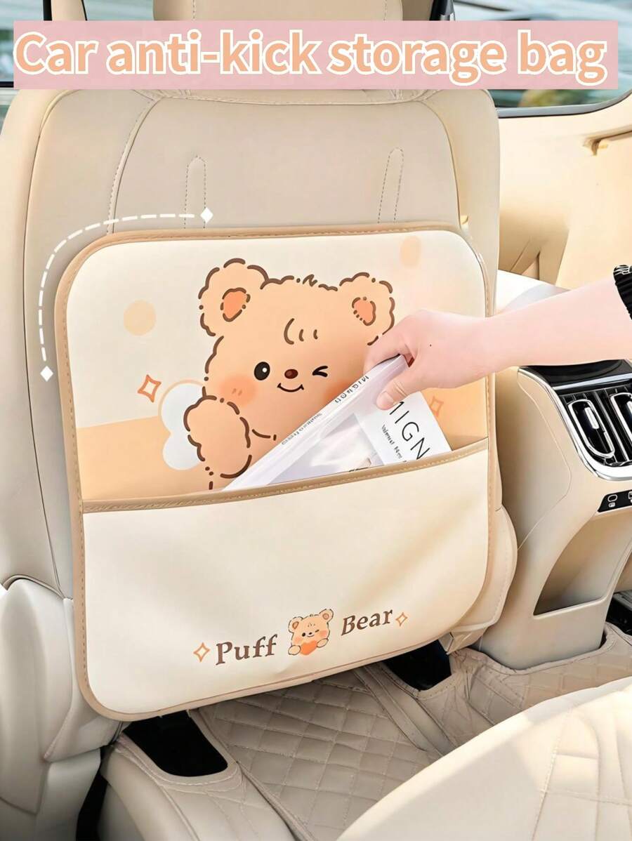 Leather Car Seat Back Anti-Kick Pad Car Creative Multi-Functional Car Seat Back Protection Cute Pattern Material: Leather Function: Protect The Seat Back / Anti-Kick, Dirt-Resistant And Easy To Clean Car Model: Universal, Easy To Install