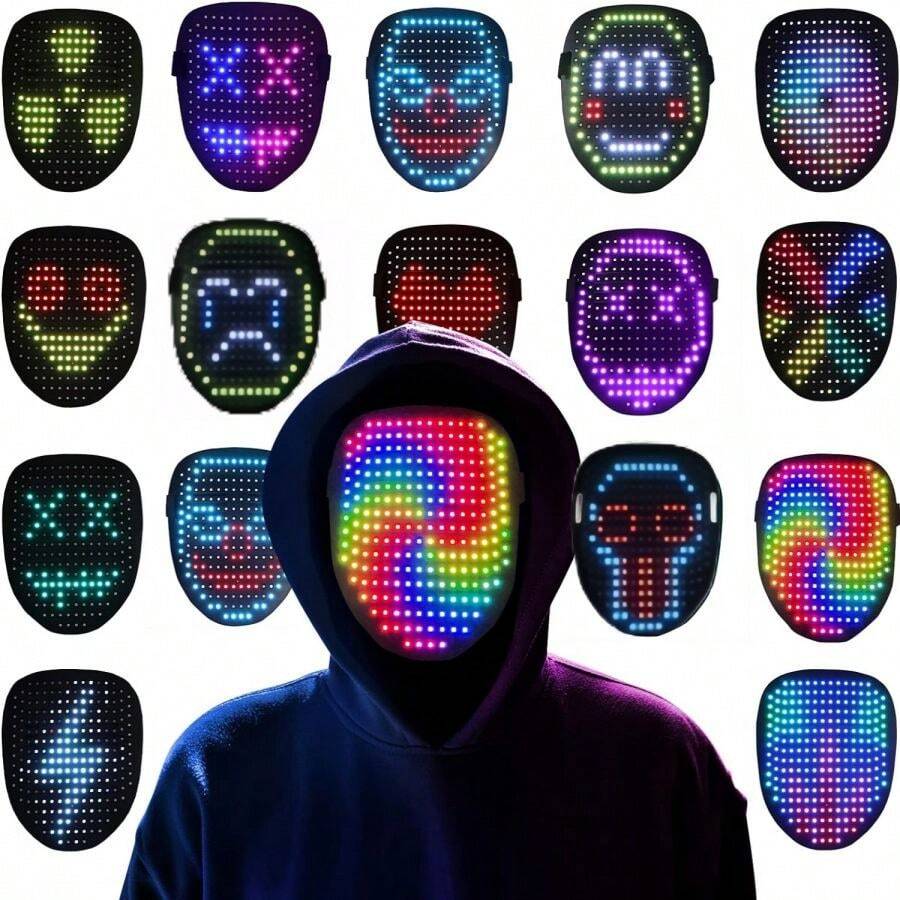 Led Mask With Gesture Sensing Transforming, Light Up Luminous Digital Glow Mask For Halloween Rave Dj Party Masquerade